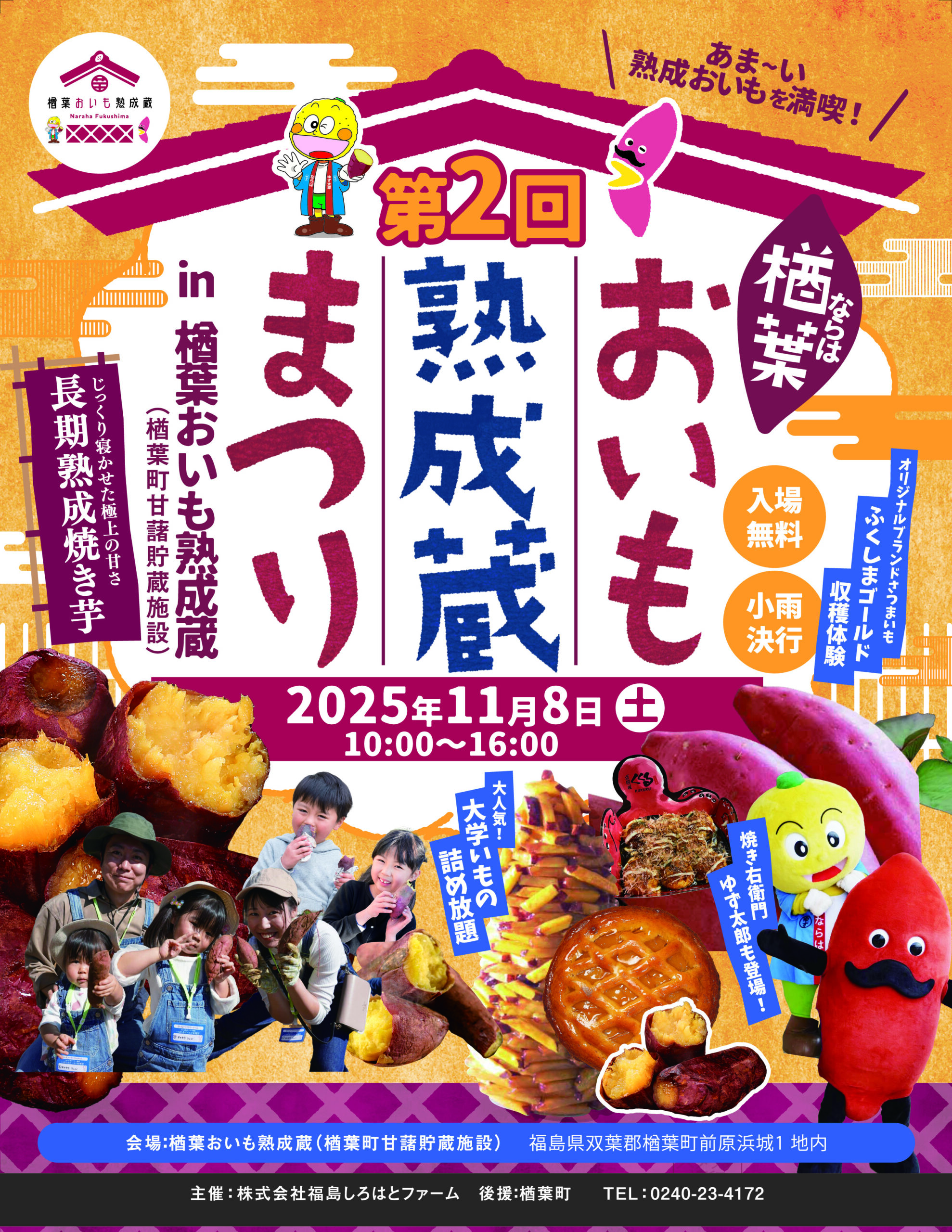 福島県双葉郡楢葉町にある、「楢葉おいも熟成蔵」にて、昨年大好評だった【楢葉おいも熟成蔵まつり】を今年も開催します!